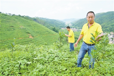 枧岭村是典型的山村,各自然村零散分布在山谷里,自然环境相当优美。枧兴合作社南药种植基地位于枧岭滑石自然村对面的山坡上,现在是一片绿意盎然。记者看到,去年种下的化州橘红,现在已有一米多高,枝梢加快萌发,开始长成小树的模样。从基地俯瞰村庄,翠谷如龙,美不胜收。