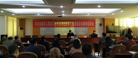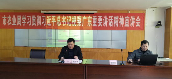 会后市农业局党组成员、副局长梁胜华讲话并强调,要以谭校委的报告为东风,深入学习,准确把握精神实质,进一步将全局学习贯彻习近平总书记视察广东重要讲话精神引向深入。