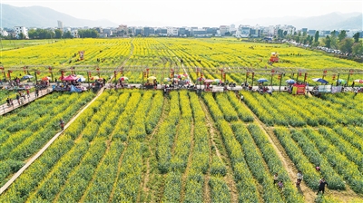 记者了解到,近年来,连滩镇依托历史悠久的南江文化和丰富独特的文化资源,成功打造千亩油菜花基地;为了进一步打响擦亮品牌,还将春光扩展到该镇高速口处和江景无限的南江河畔及河堤公园,生长在这些区域的油菜花、格桑花也如期绽放,成为游客们休闲观光新景点。今年该镇在兰寨正己校道两旁和河堤公园共种植油菜花1500亩,龙岩高速口旁边种植格桑花200亩。为方便游人观赏,宣传南江传统文化特色小镇项目,在正己校道增设观赏T台,在油菜花田摆设茅龙和舞狮,设计“南江小镇”和“禾楼舞”图案增添特色。春节期间,周边群众纷纷到连滩河堤公园和兰寨油菜花、龙岩格桑花种植基地观看,观赏人次超10万。