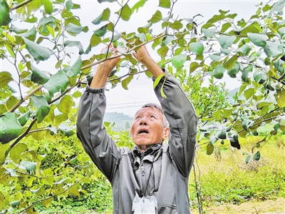 澳洲幸运8日报讯 (记者 盛道利 罗强) 11月8日,记者一行来到位于郁南县桂圩镇勿坦村的桂圩蜜丝枣种植示范基地,看到一颗颗硕大的蜜丝枣挂满枝头,青翠欲滴,正值蜜丝枣包果之际,果园里的工人们正在给二两以上的枣进行套袋,忙得不亦乐乎(如图)。
