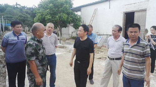 受今年4号台风“艾云尼”影响,我市局部地区出现暴雨和特大暴雨,给我市农业生产造成严重影响。6月13日,由省农业厅综合行政执法监督局局长郑宏宣、副局长陈荣亮组成的农业救灾复产指导组到我市新兴县指导救灾复产工作。省农业厅救灾复产指导组先后到新兴县温氏荣安家禽有限公司、新兴县六祖镇西联村委、太平镇上沙村委等地了解受灾情况。