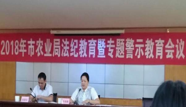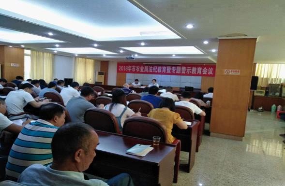 9月12日上午,市农业局系统召开2018年法纪教育暨专题警示教育会议,会议由市农业局党组成员、市纪委驻农业局纪检组组长羊春燕同志主持,局党组书记、局长陈雄荣同志作 “加强党的政治建设,营造良好政治生态”专题辅导报告。并以发生在农业系统的两宗违法违纪案件为反面教材,在全局系统干部职工中开展一次严肃认真的“以案促廉、引以为戒”专题警示教育活动。市农业局机关、市畜牧兽医渔业局、市扶贫办、市渔政支队全体干部职工及下属事业单位正、副负责人共70多人参加会议。