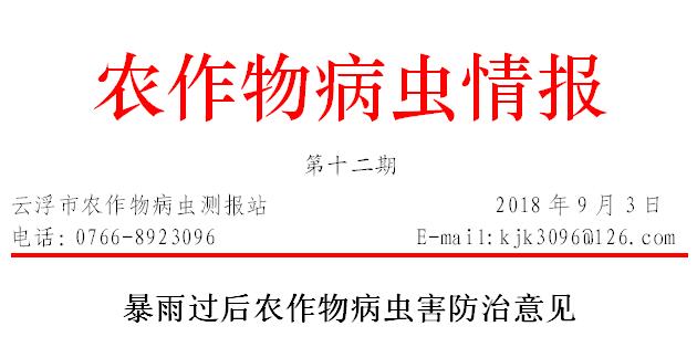受热带低压影响,我市近期连降暴雨,部分农作物受浸严重,容易造成病虫害的流行发生,预计灾区农作物病害将明显加重。各县(市、区)农业技术人员特别是病虫测报人员要深入田间调查并及时做好农作物病害的防治指导工作,确保农业生产安全。