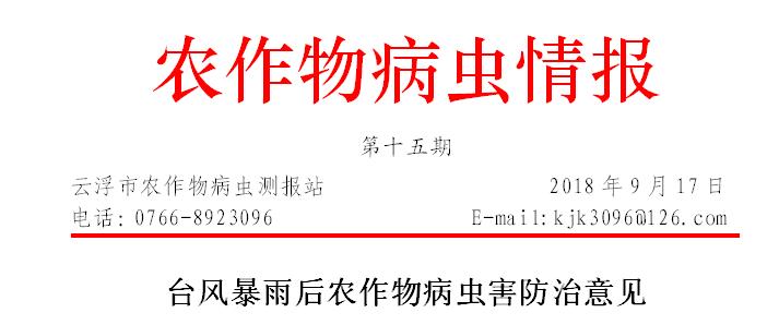 受今年第22号台风“山竹”和第23号台风“百里嘉”影响,我市农作物遇台风和暴雨造成不同程度的创伤,部分农作物倾斜倒伏,个别地区农作物存在水浸,容易造成病虫害的发生流行。