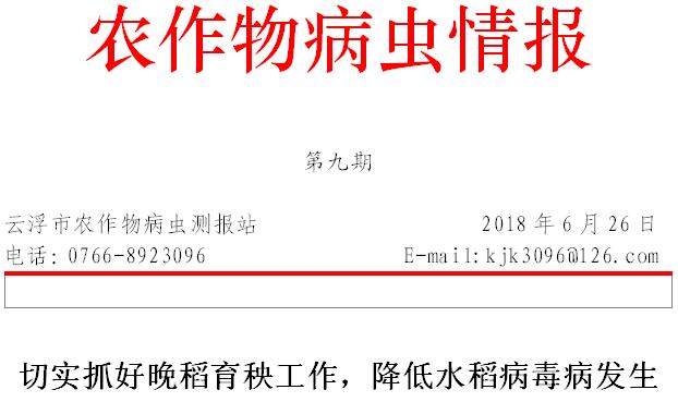 根据田间调查,今年早稻我市云城区、云安区、罗定市、郁南县等县(市、区)不同程度发生水稻橙叶病、南方水稻黑条矮缩病等水稻病毒病。依据早稻虫源、虫媒带毒率、品种布局、历史资料及天气条件等因素分析,预测今年晚稻南方水稻黑条矮缩病、瘤矮病、橙叶病等水稻病毒病在我市局部地方的田块将会加重发生。为确保我市晚稻生产安全,有效减轻晚稻水稻病毒病的发生,各级农业部门务必高度重视并及早行动,迅速落实防控措施,切实抓好晚稻病毒病防控工作。水稻病毒病可防可控,但不可治,预防原则:“农业防治,切断毒源,治虫防病,治秧田保大田,治前期保后期”。