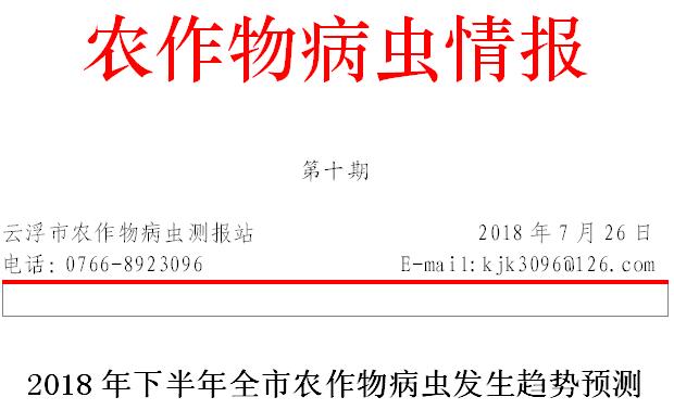 根据全省下半年农作物病虫害发生趋势会商会专家会商,结合我市上半年农作物病虫发生实况、近日开展的田间病虫基数调查情况和我市农作物品种布局、栽培制度、天气预报和历史资料等因素进行综合分析,预计今年下半年我市农作物病虫害总体将偏重发生,略重于去年,其中,稻飞虱、稻纹枯病、稻纵卷叶螟、小菜蛾、黄曲条跳甲、瓜蓟马、瓜实蝇、柑桔红蜘蛛、桔小实蝇和农区田鼠等发生较为突出。