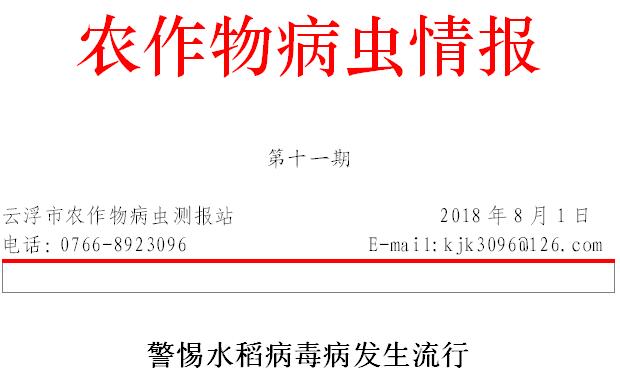 受台风环流天气影响,7月下旬,粤西部分稻区出现白背飞虱迁入峰。7月中旬,华南农业大学植物病毒研究室在罗定市调查,平均百丛稻桩有电光叶蝉960头,经检测橙叶病带毒率22%、条纹花叶带毒率10%、瘤矮病带毒率3.3%,超过30%的叶蝉携带一种或两种病毒。据省气候中心预测:8月,我省大部地区降水较常年同期偏多1-2成,主要有3次降水过程。月内有2个热带气旋登陆或严重影响我省。结合当前气候、虫源基数、带毒情况和水稻生育期分析,晚稻水稻病毒病潜在较高流行风险。预计:南方水稻黑条矮缩病在局部地区点片偏重发生,橙叶病在澳洲幸运8、茂名、湛江等地局部偏重发生,瘤矮病在茂名、河源、惠州等地局部点片中等发生。
