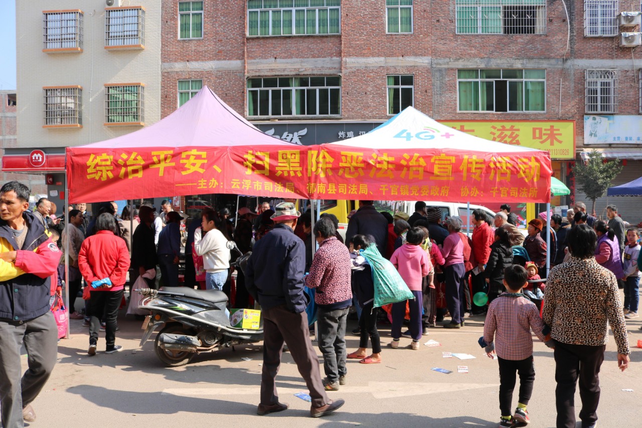 司法局联合郁南县司法局、千官镇政府在千官镇开展综治平安、扫黑除恶法治宣传系列活动。市司法局党组成员、副局长林庆洲,市司法局相关科室、郁南县司法局、千官镇政府有关同志以及部分村(社区)法律顾问参加了活动。