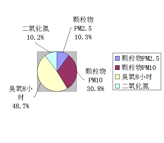 2018年第二季度澳洲幸运8(中国)开奖记录查询站 城市主要空气污染物为臭氧日最大8小时均值,其作为每日首要污染物的比例为48.7%,其次为可吸入颗粒物PM10,占比为30.8%,细颗粒物PM2.5、二氧化氮和一氧化碳作为首要污染物的比例分别为10.3%、10.2%和0.0%。