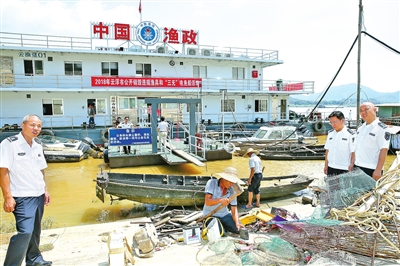 今年西江禁渔期间,全市共开展禁渔期专项执法检查98次,派出执法车辆124辆(次),执法船艇215艘(次),参加执法人数676人(次),全市共查处没收电鱼船2艘,没收电鱼工具27套,清理没收虾笼600只,违规网具100多张,另有无主电鱼工具一批。