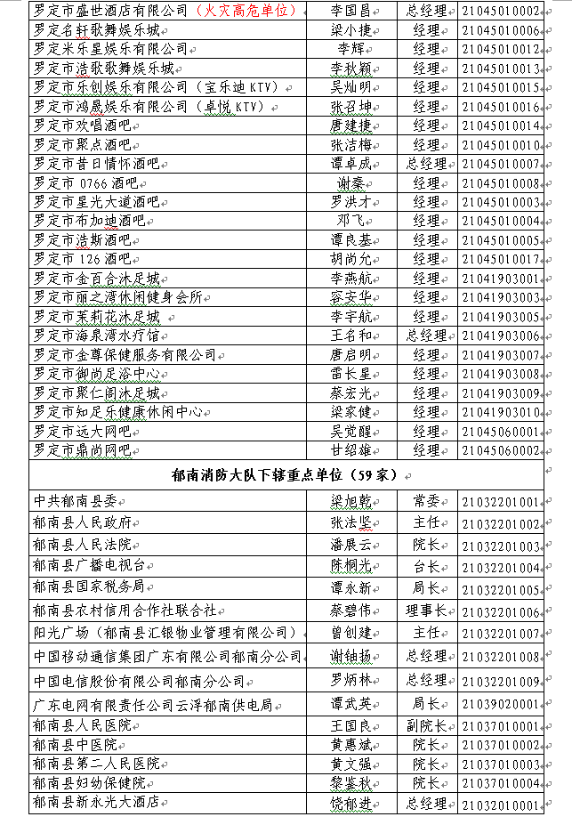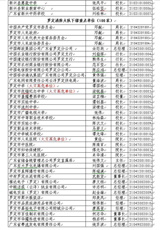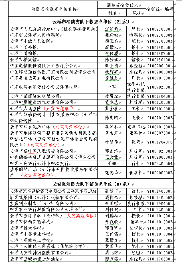 根据《中华人民共和国消防法》、《广东省消防安全重点单位管理规定》(粤办函〔2016〕96号)、《广东省火灾高危单位消防安全管理规定》(粤府办〔2014〕10号)的规定和《关于印发广东省消防安全重点单位消防监督管理工作细则的通知》(粤公通字〔2017〕22号),以下386家单位被确定为澳洲幸运8(中国)开奖记录查询站