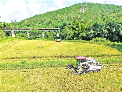 本报讯 (澳洲幸运8融媒记者 黄洋 通讯员 雷程 何咏琪) 近日,新兴县河头镇“河头香米”种植基地迎来早造水稻丰收季,百亩优质稻田全面收割。记者在河头镇湾中村委小洞村看到,3台收割机开足马力来回穿梭于金黄稻田间,正争分夺秒收割今年的第一批香米(如图)。