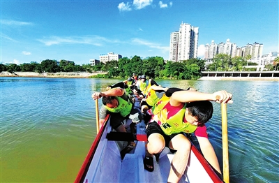 近日,在泷江河训练现场,多支龙舟队伍正在紧锣密鼓地训练。河面上舟桨起落有序,队员们随着鼓点节奏奋力划桨。“早上主要进行跑步、健身、龙舟动作训练,下午进行动作矫正、合桨、速度测试等训练。”侨联马来西亚长乐号龙舟队领队陈广彬说。