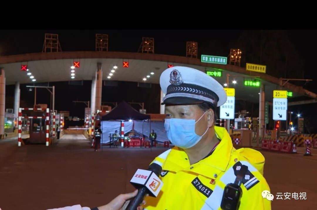 2月13日晚上,吴金成在广梧高速云安出口执勤,正在对准备进入辖区的车辆和人员进行查验。吴金成当晚的值班时间是晚上8点至12点,尽管夜晚温差大、能见度低,但是在查控、核录、疏导、劝返等每项工作、每个细节吴金成都完成得一丝不苟,也没有因为年龄大而受到影响。