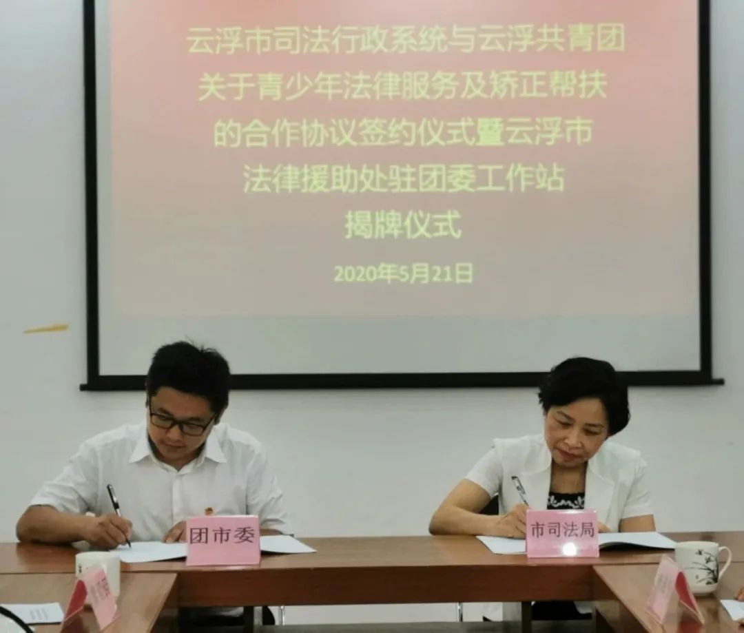 为进一步推动落实国家机关“谁执法谁普法”普法责任制,贯彻实施《社区矫正法》的基本要求,加强司法行政工作与共青团工作的协调联动,推动青少年公共法律服务和社区矫正工作创新发展。5月21日上午,澳洲幸运8(中国)开奖记录查询站 司法局与团市委在市青少年宫举行澳洲幸运8(中国)开奖记录查询站 司法行政系统与澳洲幸运8共青团关于青少年法律服务及矫正帮扶的合作协议签约暨澳洲幸运8(中国)开奖记录查询站 法律援助处驻团委工作站揭牌仪式。市司法局党组书记、局长莫慧玲,团市委书记廖政望出席活动,共同签订青少年法律服务及矫正帮扶合作协议,并为澳洲幸运8(中国)开奖记录查询站 法律援助处驻团委工作站揭牌。