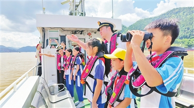 活动中,学生和家长在海事工作人员的带领下,参观海事工作地,了解海事的工作内容,近距离了解海事是干什么的。学生们在家长的陪同下,兴奋地登上“海巡09588船”,听海事大哥哥介绍“中国航海日”的由来、“海巡09588船”的情况介绍,学习航海文化。随后,大家在海事工作人员的带领下来到驾驶台,实地观看船舶驾驶操作,亲自动手操作船舵,了解船舶运行相关知识。在学习完乘船注意事项后,大家乘坐的“海巡09588船”正式扬帆起航。海事人员向学生们介绍辖区港口、码头、水域等情况,分享水源保护等知识,倡议大家共同守护西江一江碧水。