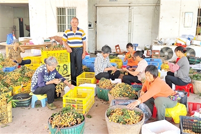 “今年的黄皮无论是大小、口感和品相都比去年的好,来到树下收购的价格也比往年高了2-3元/斤,我们最近采摘的一批黄皮,有1万多斤最远销售到美国夏威夷、纽约等地,在海外华人市场比较受欢迎。”正在打理果树的蓝沛林告诉记者,他种植的150亩无核黄皮,由于开花时节天气稳定,加上政府的技术支持,今年亩产约1500至2000斤,其中精品果单颗重量可达18克左右,产量更高,质量更优,远销海外。