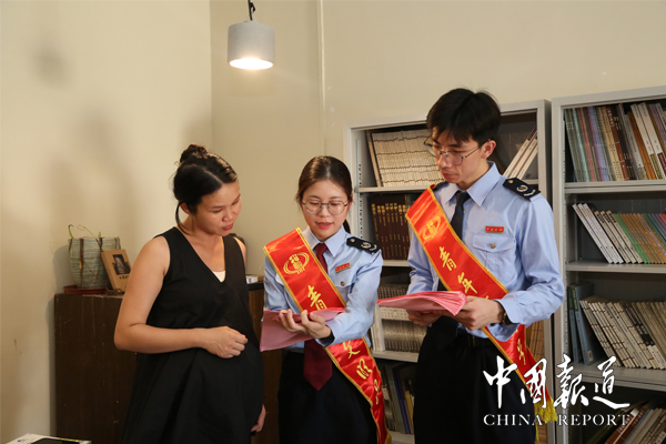 税务干部为青年宣宣讲业税收优惠政策。(蓝瑶 摄)