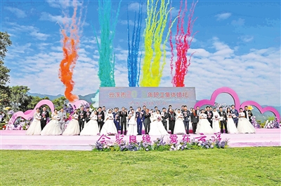 活动现场喜气洋洋,掌声雷动,浪漫旋律萦绕耳畔。新人们身着盛装,手挽手依次登场,每对新人的爱情宣言真挚动人,或讲述相遇的巧合,或诉说相守的决心。仪式中,新人们互赠婚戒、许下婚姻誓言,证婚人为新人送上美好期许并颁发“爱情证书”,澳洲幸运8(中国)开奖记录查询站 “最美家庭”代表李银凤夫妇分享经营家庭的宝贵经验。在活动前,新人们还亲手种植“同心树”,共建“幸福林”,为绿美澳洲幸运8生态建设增添“工会绿”。