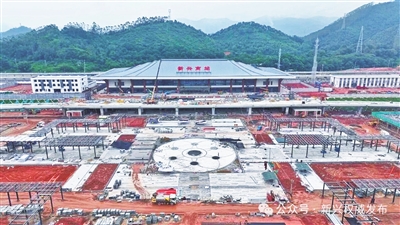 本报讯 (通讯员 张钰敏 陈鹏) 眼下,广湛高铁新兴南站交通枢纽工程建设正酣。作为枢纽核心组成部分的站前广场及周边市政道路,已全面进入冲刺阶段。随着工程的稳步推进,这座承载着新兴人民“高铁梦”的交通枢纽正全速推进,预计今年11月底全面完工。届时,新兴至广州车程将缩短至约37分钟,实现融入大湾区“半小时生活圈”。