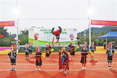 开幕式现场,歌曲《气势如虹》激情唱响,青春气息扑面而来;非遗禾楼舞表演惊艳亮相(如图),传统民俗与青春运动激情碰撞。随后,羽毛球、乒乓球混合双打,一分钟跳绳、集体跳绳、4×50米混合接力赛、50米短跑、匹克球混合双打等项目相继展开。此外,活动创新设置了“抛绣球”等亲子项目,将体育竞技与本土文化传承有机融合,赢得了现场阵阵掌声与欢呼。