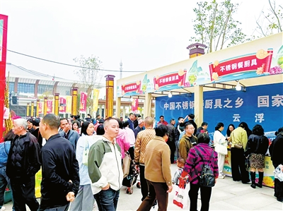 在产品展销区,新兴本土企业的特色展位成为焦点。新兴县众创文旅、微丰农业科技等企业开设的直播间里,主播们正热情推介葛根汁、凉果等产品。葛根汁饮料展位前,工作人员一边邀请市民试饮,一边讲解产品特色,扫码下单的市民排起队伍。“中国不锈钢餐厨具之乡”主题展位上,各类精美厨具吸引游客驻足,不少人直接选购。作为新兴的特色产业名片,凉果产品也广受欢迎。酸甜可口的凉果摆满展位,试吃游客纷纷购买。不锈钢厨具、文创产品等“新兴制造”与“新兴文创”,借助高铁开通的契机,走进更多湾区消费者的视野。